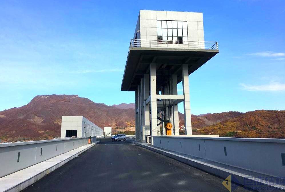 观音阁水库溢流坝启闭机室,外墙采用整体现浇清水混凝土技术
