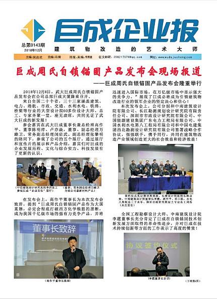 2018年12月8日,武大九游会J9真人游戏第一品牌周氏自锁锚固产品发布会在公司总部九游会J9真人游戏第一品牌大厦隆重召开。