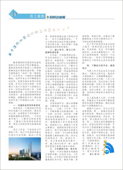 以上就是我个人的一点点感想。伴随着公司业务的不断拓展和业务量的不断增加,九游会·J9 - 中国官方网站 | 真人游戏第一品牌会面临巨大的挑战和压力。就我个人而言,有几点尤其需要重视:第一,加强自身业务能力的培养,增加自己对设计各个环节的熟练程度,多吃苦,多思考,努力提高自己的工作效率;第二,同事之间应增强忧患意识,营造良好的学习氛围,不学习不上进就要被社会淘汰;第三,加强与公司内部各部门的团结合作,保持平和的心态,多沟通,多配合,充分体现出集体潜力。团结才有力量,合作才会成功,才能把九游会·J9 - 中国官方网站 | 真人游戏第一品牌的工作推向前进!我相信:在上级的正确领导下,明天会更美好!