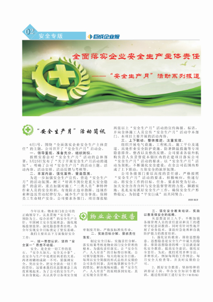 按照安委会对“安全生产月”活动的总体部署,5月25日发布了“关于开展安全生产月活动的通知”,明确了公司“安全生产月”的活动主题、活动内容、活动安排、活动反馈与考核等。